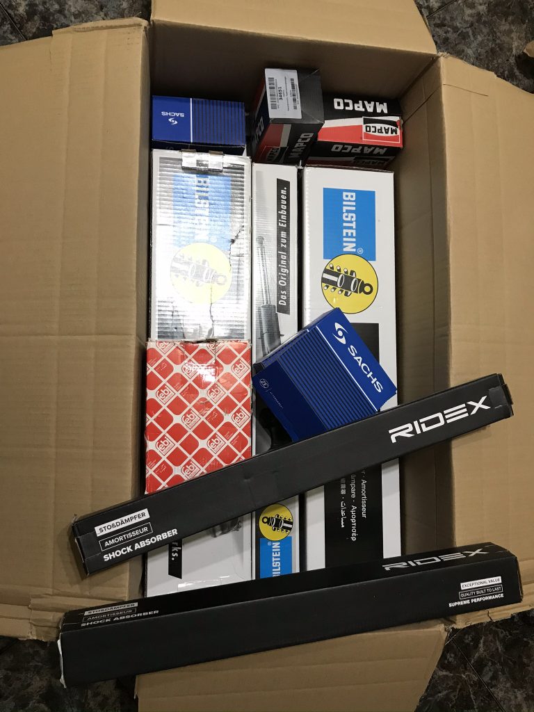 Rotula Rotula Bomba de agua Correa trapezoidal Junta del termostato Retén caja de cambios (detrás) Brazo de suspensión Brazo de suspensión Termostato Cojinetes de rueda (delante) Cojinetes de rueda (detras) Copelas Amortiguadores delanteros Amortiguadores traseros Discos de freno Silent blocks barra de dirección Pastillas de freno Líquido de frenos Bujias Tornilleria llantas Esparragos llantas Bobina del encendido Barra de torreta traseras Barra de torretas delantera Tapón del carter Silent block Escape Guardapolvos amortiguadores Fuelles cremallera de direcciónGaleria de imagenes